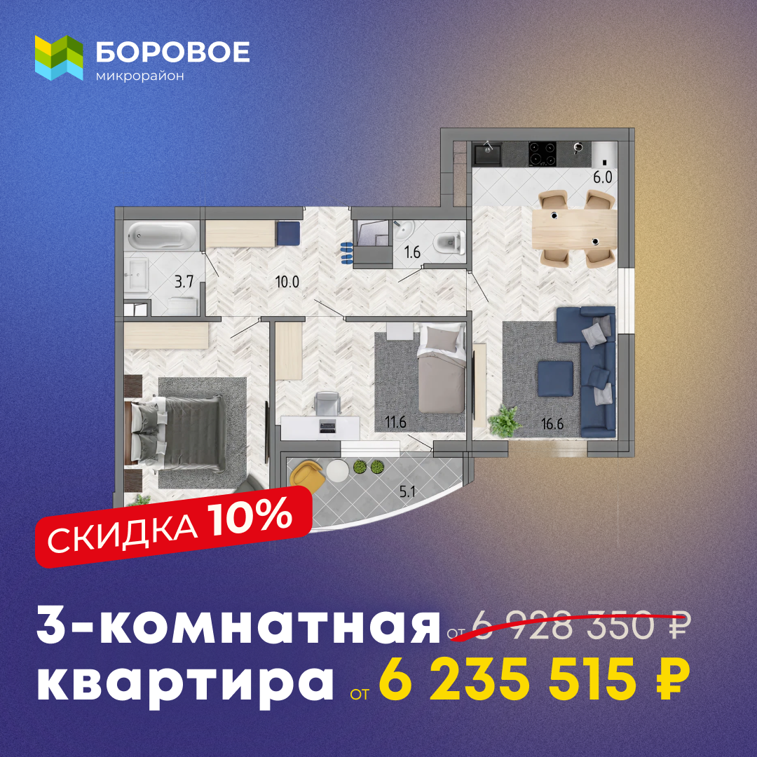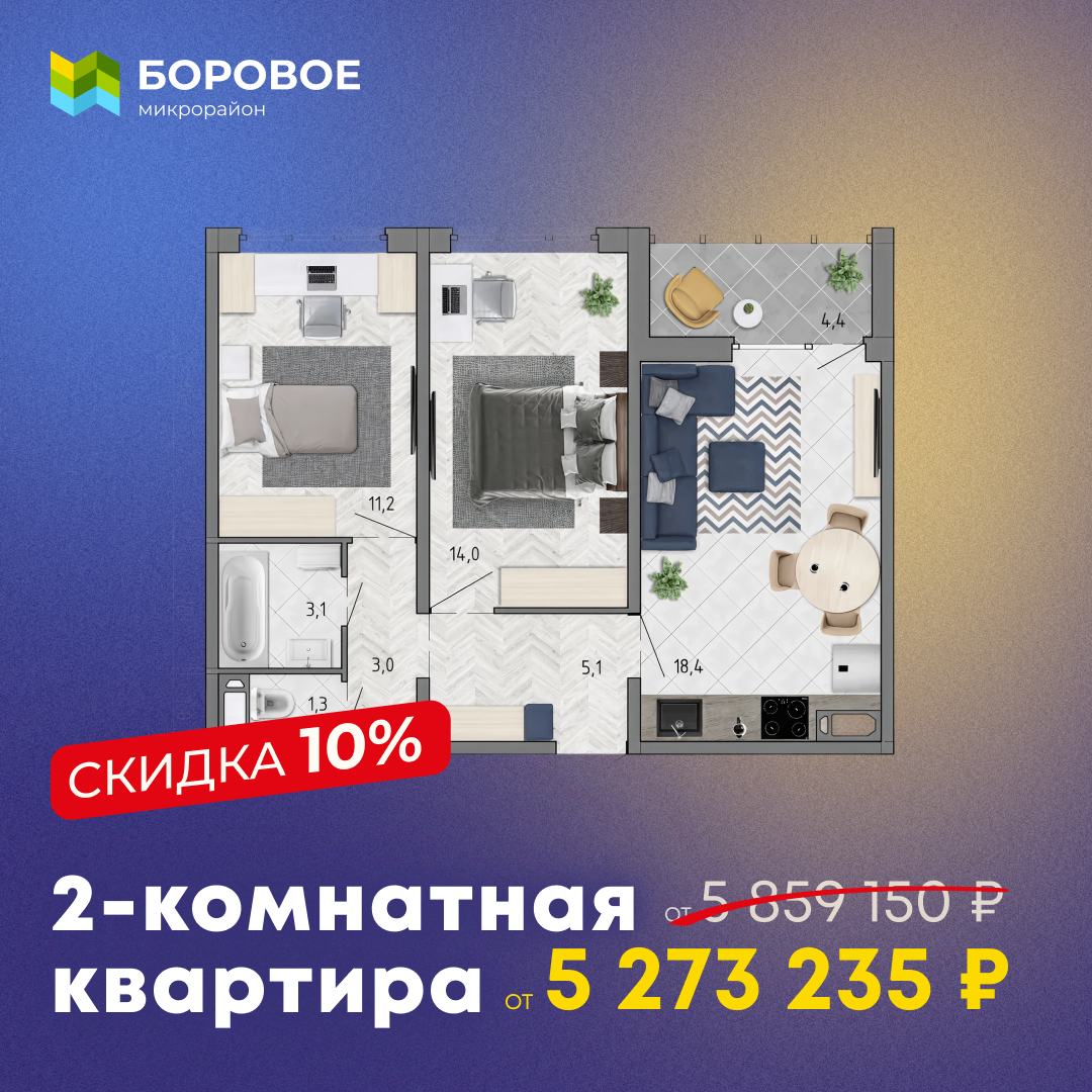 Мечтаете о новой квартире в зелёном, благоустроенном районе? Сейчас — идеальное время купить жильё в ЖК «Боровое» с максимально выгодной ставкой!